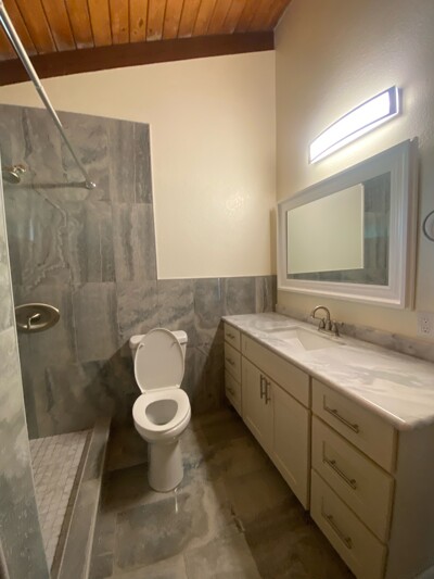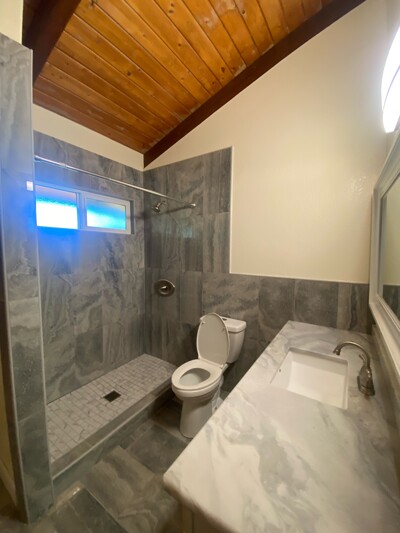 - **Modern Amenities**: New PV solar panels with battery backup, a tankless system installed in September 2022 (leased), new split A/C units in the master bedroom and living room, outdoor shower with new rock wall, and an electric car charger.
