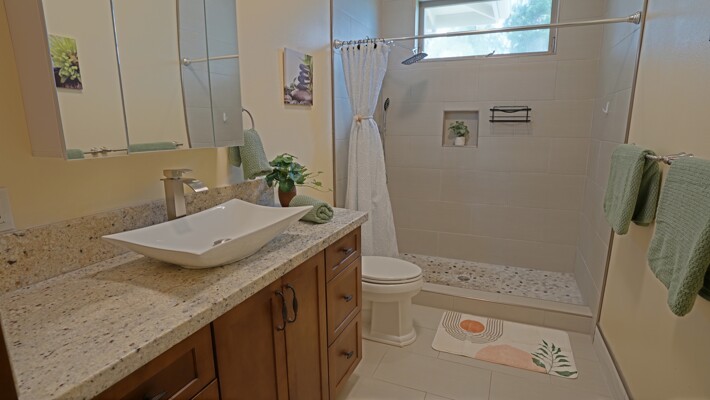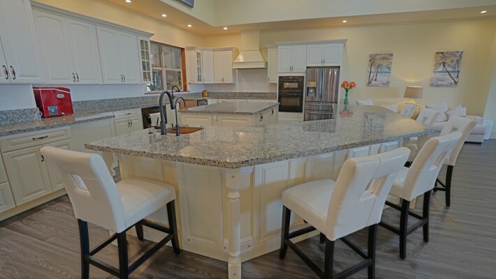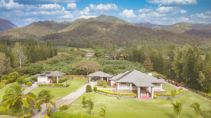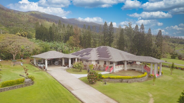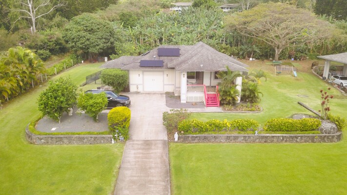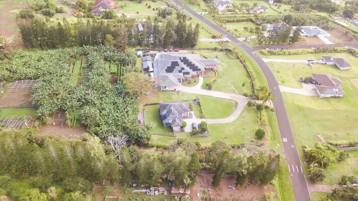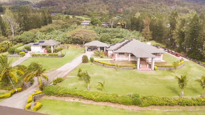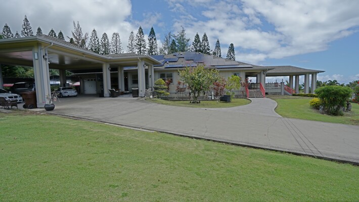 Custom Plantation style single story home on 2 acres, includes 6-bedrooms, laundry room, office & 4.5 baths, 4643 sq ft home. 18-foot ceilings in the spacious custom kitchen & living room, granite countertops, waterproof engineered floors throughout, mother-in-law quarters or care giver, guest bonus. Comes with a 3-car garage, 1678 sq ft covered carport, 940 sq ft Ocean front covered porch, 796 sq ft covered patio. 57 PV panels, 2 tankless water heaters, gas & propane, 2 battery backups- 2pack stations. (owned) installed 2022. Also, a custom 2 bedroom, 1 bath 999 sq ft single story cottage with 1 car garage, and outdoor built in extra-large storage room. includes 12 PV panels, 12 inverters, 1 Franklin battery, solar hot water, battery backup (not owned) installed 2023. Landscaped with irrigation on the entire 2 acres, fulling fenced in & gated (electric).